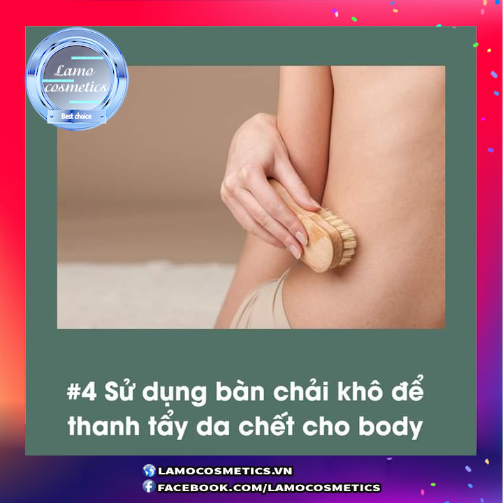 Làn da của bạn có một hệ thống miễn dịch riêng biệt để chống lại những loại vi khuẩn gây hại, loại bỏ da chết và tái tạo tế bào da mới mỗi ngày. Để đẩy lùi tình trạng sần sùi, xỉn màu và kém mịn màng trên da, bạn hãy dùng 1 chiếc bàn chải khô để nhẹ nhàng làm sạch các tế bào da chết trên body. Mẹo chăm sóc da này còn giúp tăng lưu thông máu, tạo điều kiện thuận lợi dẫn lưu bạch huyết được hiệu quả, giúp cho làn da hồng hào và tươi tắn hơn.