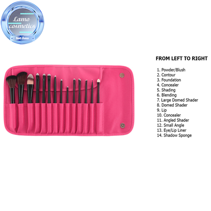 - Bộ sản phẩm bao gồm: 14 cây cọ và bóp da hồng