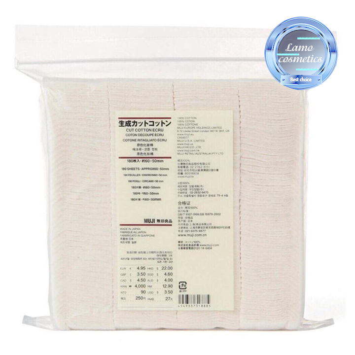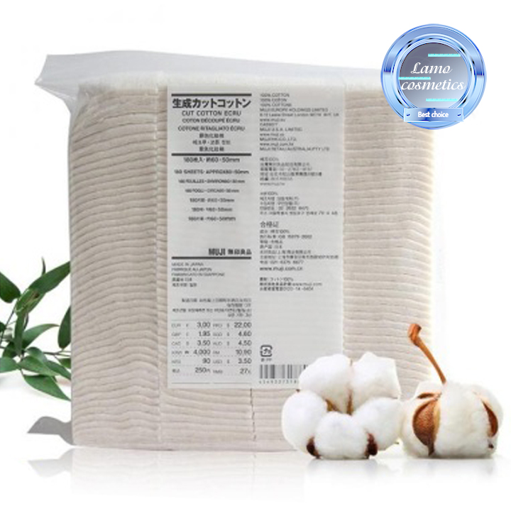 Bông Tẩy Trang Hữu Cơ Muji Cut Cotton 180 Miếng Mẫu Mới Nhất