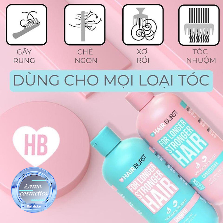 - Với hơn 95% thành phần thiên nhiên từ bơ, dừa cùng các vitamin dưỡng chất, sét dầu gội xả Hairburst giúp kích thích tóc mọc nhanh, dài và dày hơn