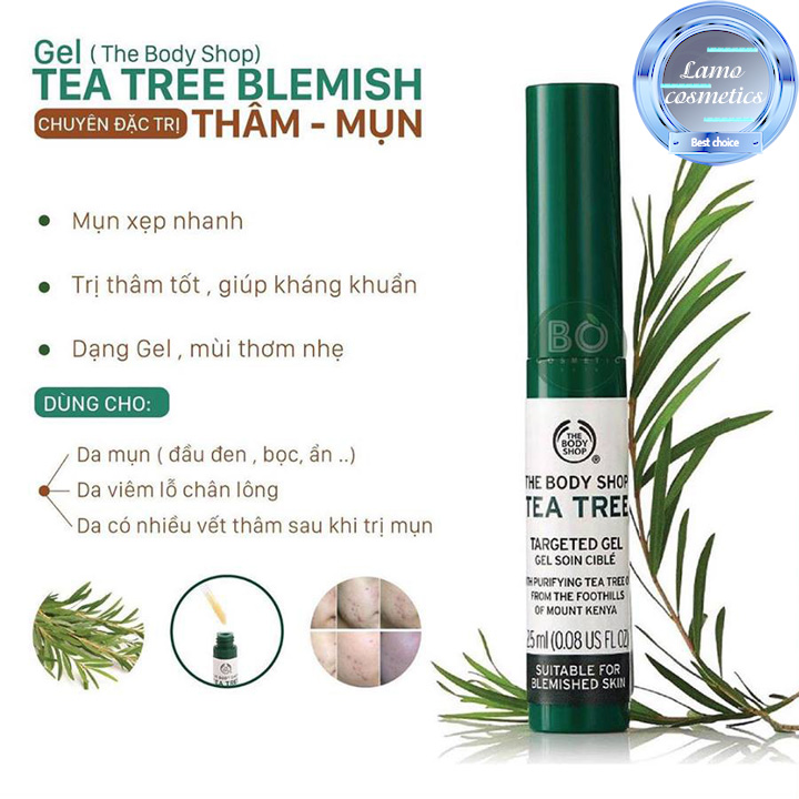 Gel chấm mụn trị thâm The Body Shop Tea Tree Blemish Gel là loại trị mụn đến từ hãng mỹ phẩm hàng đầu và nổi tiếng Anh The Body Shop.Gel chấm mụn trị thâm The Body Shop Tea Tree Blemish Gel là dòng gel chấm trị mụn, trị thâm được yêu thích nhất trên thế giới . Sản phẩm Gel chấm mụn trị thâm The Body Shop Tea Tree Blemish Gel khi ra mắt thị trường trở lại đã nhận được cơn mưa lời khen từ người tiêu dùng, cộng đồng mạng, các beauty bloger nổi tiếng thế giới...