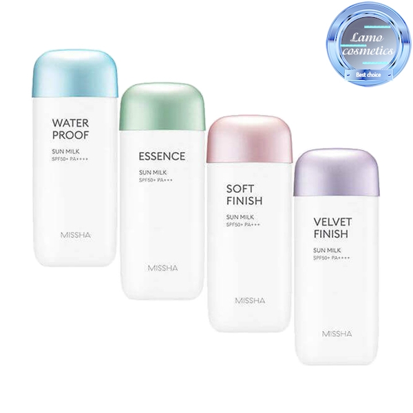 - Finish Sun Milk : Phù hợp với mọi loại da, trừ da nhạy cảm.- Waterproof Sun Milk : Phù hợp với da nhạy cảm và da mụn- Essence Sun Milk: phì hợp da khô và hỗn hợp khô- Velvet Finish Sun Milk: phù hợp da dầu và hỗn hợp dầuĐọc đến đây, chắn hẳn các cô nàng xinh đẹp của Lamo Cosmetics đã chọn được loại kem chống nắng cho da mặt và toàn thân tốt nhất cho mình rồi đúng không nào!!!