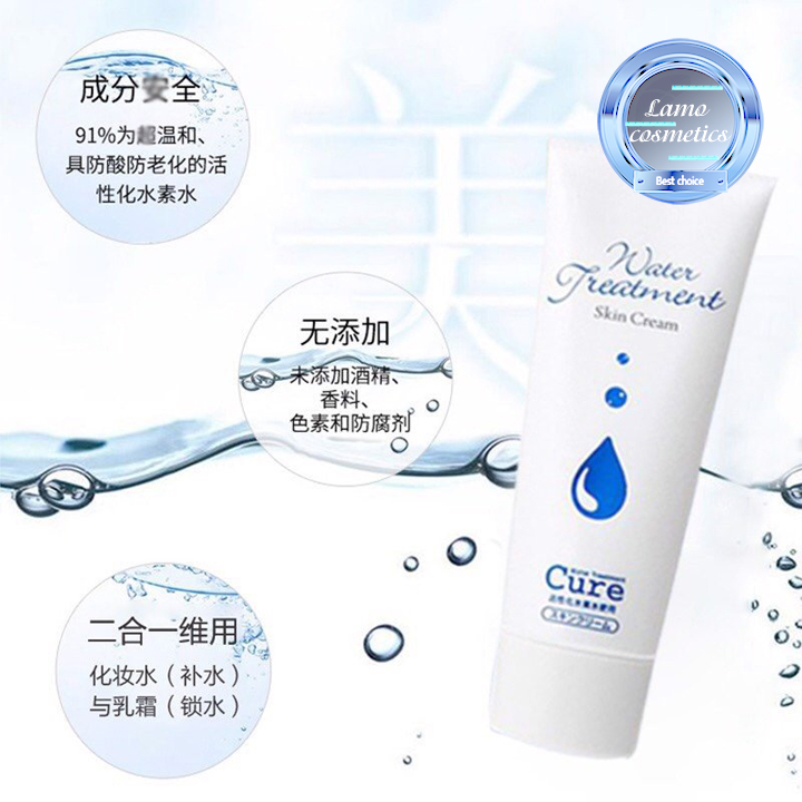 - Kem Dưỡng Ẩm Cure Water Treatment Skin Cream 30gr dưỡng ẩm nhẹ cho da, cân bằng độ ẩm, đồng thời phòng tránh cho da khỏi bị mất nước dẫn đến khô và hình thành nếp nhăn.