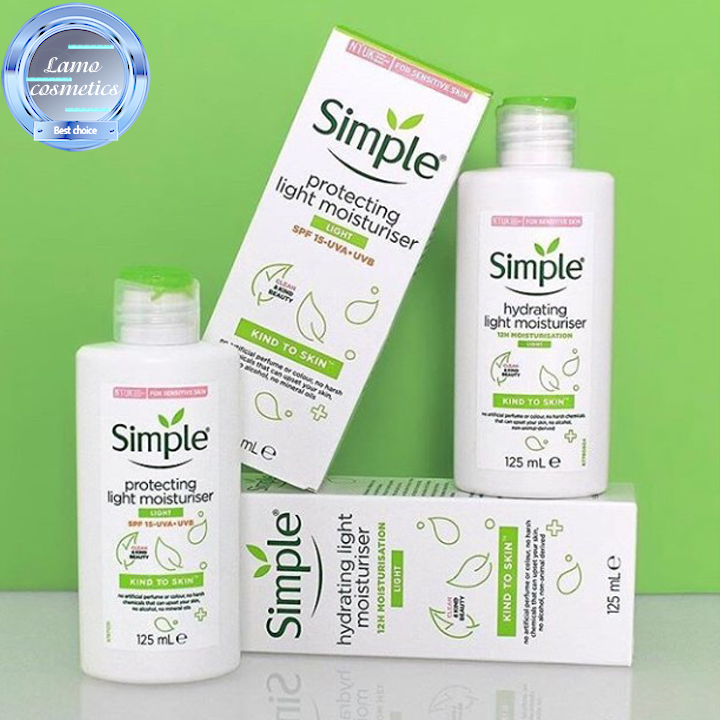 Một trong những dòng sản phẩm chăm sóc da nhẹ dịu, thích hợp sử dụng buổi sáng cực kì được yêu thích của thương hiệu Simple đó chính là Kem Dưỡng Da Simple Kind To Skin Hydrating Light Moisturiser 125ml Sản phẩm dạng Lotion, sữa dưỡng, cực mỏng nhẹ và để lại cảm giác thoáng nhẹ, ẩm mượt cho da mỗi khi sử dụng.