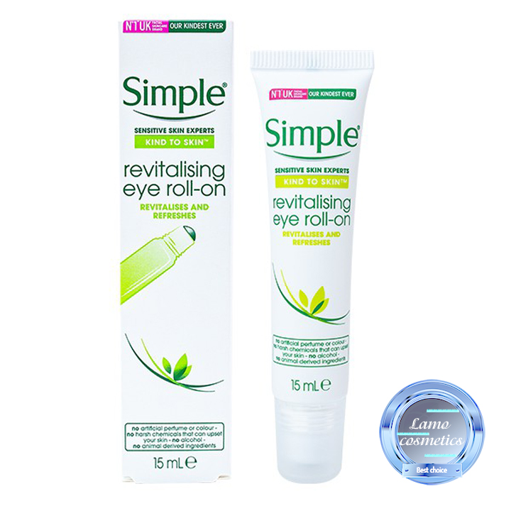 Lăn Mắt Simple Kind To Skin Revitalising Eye Roll-On là sản phẩm chăm sóc vùng mắt đang bán chạy số 1 tại Anh. Điều đặc biệt đã làm nên sự thành công của hãng đó là tính chuyên nghiệp, chất lượng đi cùng với hiệu quả. Cùng Lamo Cosmetics hiểu sâu hơn về sản phẩm Lăn Mắt Simple Kind To Skin Revitalising Eye Roll-On này nhé!