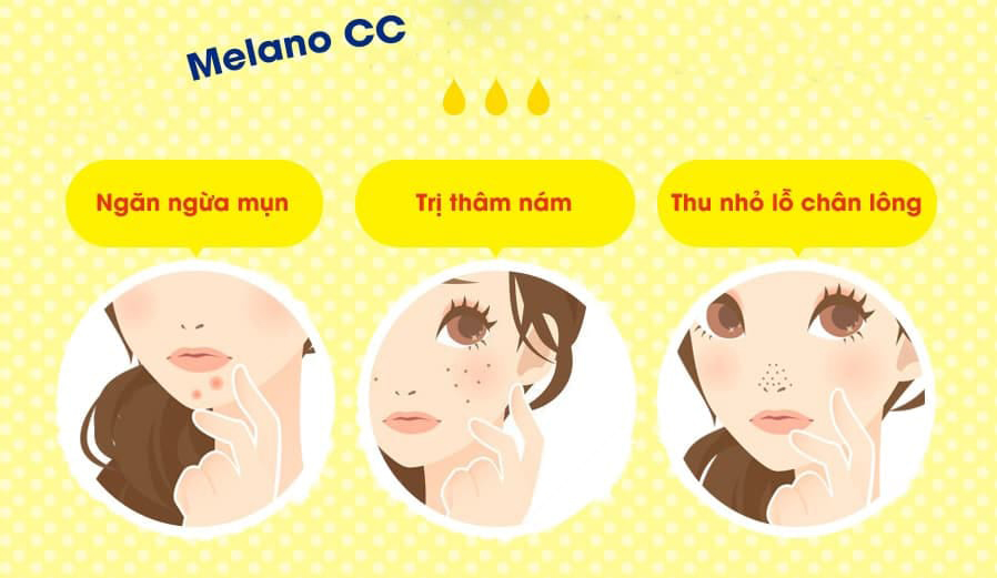 - Sử dụng mặt nạ Melano CC thường xuyên sẽ giúp bạn ngăn ngừa sự xuất hiện mụn trứng cá, rôm sảy. Không chỉ vậy dùng mặt nạ làm da trở nên căng bóng, mịn màng đầy sức sống.