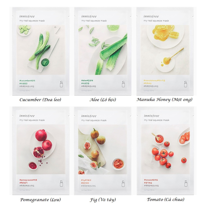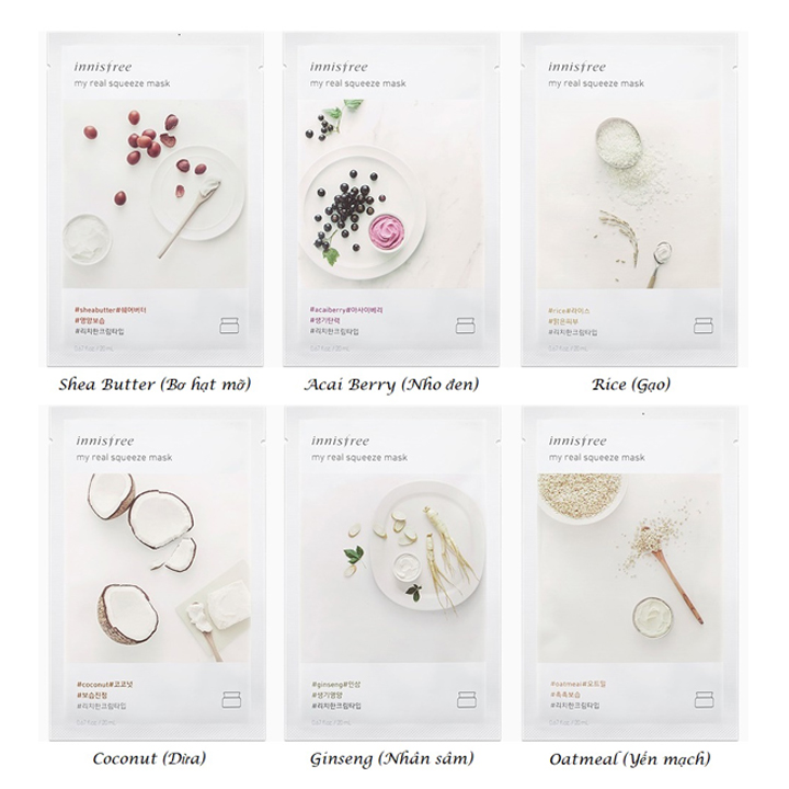 Mặt Nạ Innisfree My Real Squeeze Mask gồm các loại: