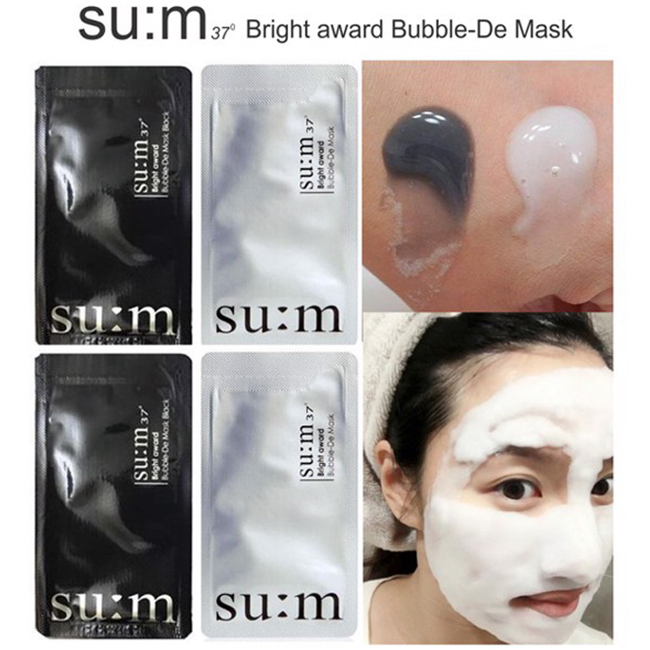 - Kết cấu của Sum37 Bright Award Bubble-De Mask là dạng gel, khi bôi lên da sẽ ngay lập tức sủi bọt và lượng bọt rất nhiều. Chính vì vậy bạn hãy tán nhanh lên da trước khi nó sủi bọt nha- Mask thải độc Su:m 37 khi bôi lên da sẽ tạo bọt giải phóng oxygen vào trong da. Bọt thấm sâu vào trong lỗ chân lông giúp đào thải chất bẩn ra bên ngoài da, do vậy làn da sáng hơn sau khi rửa sạch khỏi chất bọt mặt nạ thải độc.- Mặt Nạ Sủi Bọt Thải Độc Da Sum37 Bright Award Bubble-De Mask có khả năng đẩy nhân mụn ra ngoài mà không hề làm tổn thương đến da- Mặt nạ bổ sung một lượng collagen cực lớn. Mặt nạ không chỉ giúp da khoẻ mạnh, mịn màng mà còn giúp da chống lại các dấu hiệu của tuổi tác- Có 2 màu cho các bạn lựa chọn: + Black : dành cho các bạn da dầu. + White : dành cho các bạn da thường hoặc da khô.