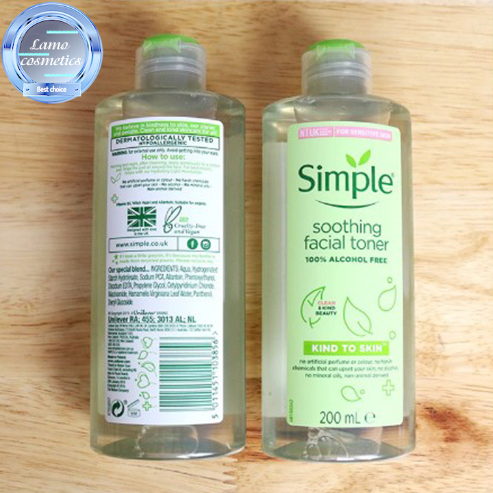 Nước hoa hồng Simple Kind To Skin Soothing Facial Toner 200ml