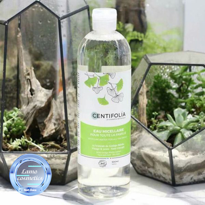 - Nước Tẩy Trang Centifolia Eau Micellaire chiết xuất từ cây lô hội, giúp làm dịu da ngay lập tức.
