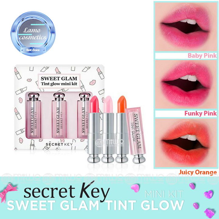 Son Dưỡng Có Màu Secret Key Sweet Glam Tint Glow Mini Kit Set 3 Cây Mẫu Mới Nhất