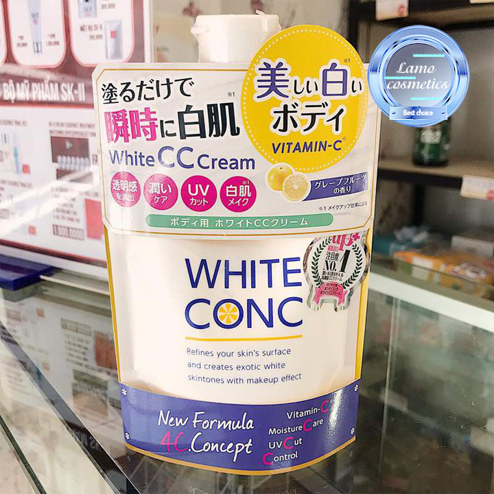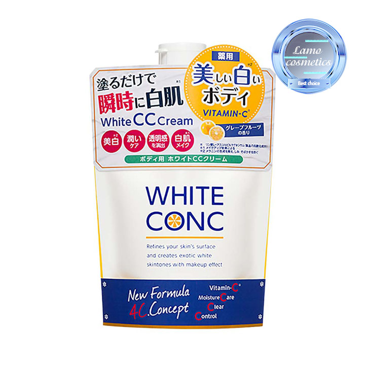 CC Cream Vitamin C White ConC Nhật Bản là Sữa Dưỡng Thể Trắng Da Body dùng trong SPA đến từ hãng mỹ phẩm hàng đầu và nổi tiếng Nhật Bản White Conc.Sữa Dưỡng Thể Trắng Da Body CC Cream Vitamin C White ConC Nhật Bản là dòng lotion bán chạy số 1 của hãng. Sản phẩm White Conc Vitamin C Nhật Bản khi ra mắt thị trường đã nhận được cơn mưa lời khen từ người tiêu dùng, cộng đồng mạng, các beauty bloger nổi tiếng thế giới...
