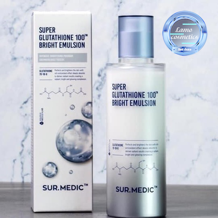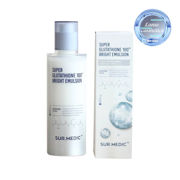 Sur.Medic Super Glutathione 100 Bright Emulsion là loại sữa dưỡng trắng da đến từ hãng mỹ phẩm hàng đầu và nổi tiếng Hàn Quốc. Sur.Medic Super Glutathione 100 Bright Emulsion là dòng sữa dưỡng trắng da bán chạy số 1 của hãng. Sản phẩm Sữa Dưỡng Trắng Da Sur.Medic Super Glutathione 100 Bright Emulsion khi ra mắt thị trường đã nhận được cơn mưa lời khen từ người tiêu dùng, cộng đồng mạng, các beauty bloger nổi tiếng thế giới...
