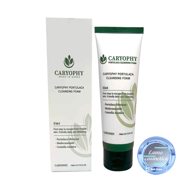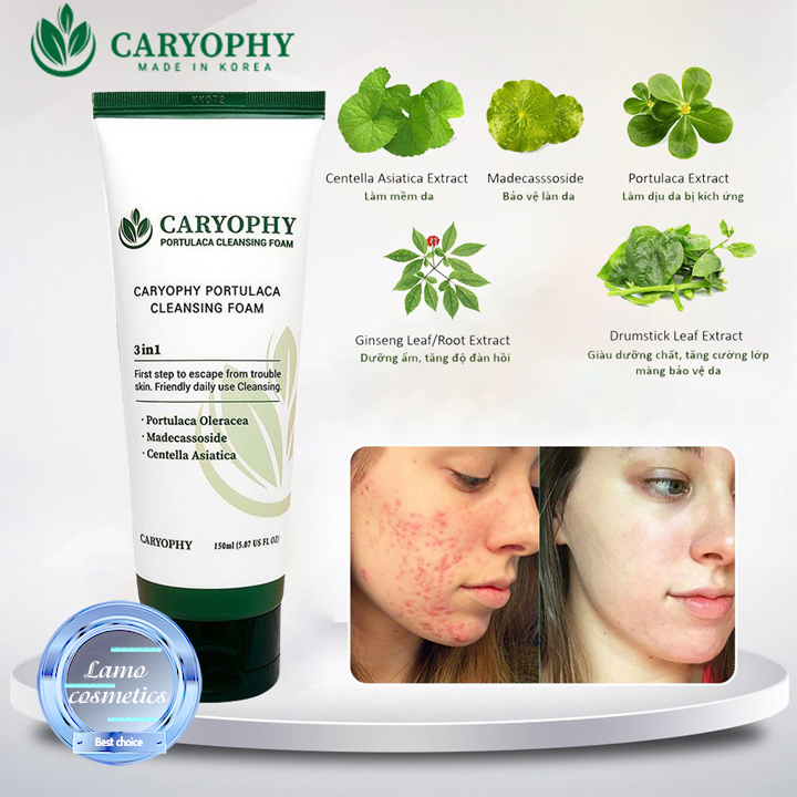 Tiếp nối thành công của tinh chất serum trị mụn Caryophy Portulaca Ampoule thì Caryophy đã cho ra mắt sữa rửa mặt Caryophy Portulaca Cleansing Foam. Đây là loại sữa rửa mặt rất lành tính, phù hợp với mọi loại da, đặc biệt các bạn da mụn đều có thể yên tâm sử dụng.Sữa Rửa Mặt Trị Mụn Caryophy Portulaca Cleansing Foam 150ml giúp làm sạch sâu, ngăn ngừa mụn hình thành, có cả chức năng tẩy tế bào chết cho da một cách nhẹ nhàng, tiêu diệt vi khuẩn gây hại cho da. Hạn chế những tổn thương có trên bề mặt da, giúp cho da trở nên mề mịn và sáng đều màu hơn.