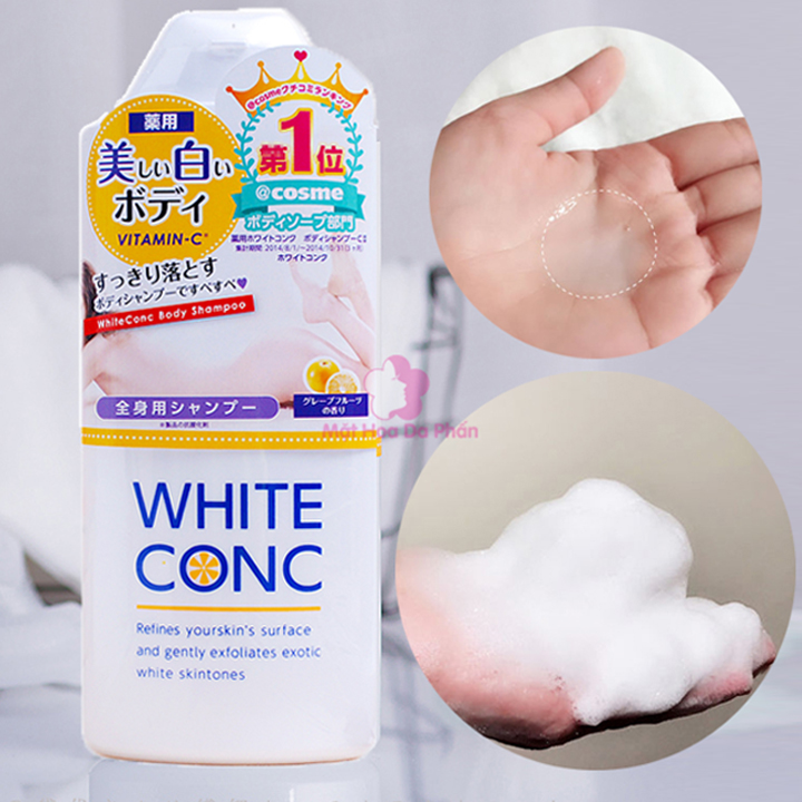 - Sữa Tắm Trắng Da White ConC Body Shampoo 360ml có hương thơm nhẹ nhàng giúp tinh thần thư giãn, thoải mái sau những giờ làm việc, học tập căng thẳng. Các nàng và chàng sẽ có cảm giác như đang được chăm sóc da tại các Spa chuyên nghiệp.