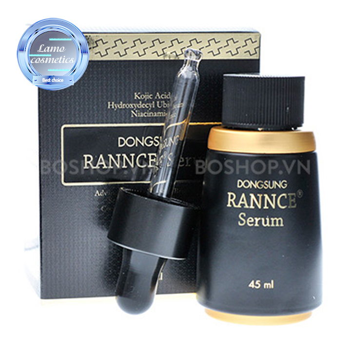 - Tinh Chất Dưỡng Trắng, Đặc Trị Nám Dongsung Rannce Serum 45ml được sản xuất bằng nguyên liệu thảo dược thiên nhiên, an toàn 100% cho da bạn, đặc biệt rất phù hợp thích nghi với làn da của người Châu Á. Với công thức đặc biệt trị nám Dong sung sẽ giúp bạn loại bỏ mọi hiện tượng nám, rám da, vết thâm, đồi mồi, tàn nhan, dưỡng trắng sáng, trắng hồng