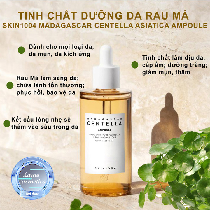 Tinh Chất Rau Má Trị Mụn, Phục Hồi Da Skin1004 Madagascar Centella Asiatica 100 Ampoule là tinh chất trị mụn đến từ hãng mỹ phẩm hàng đầu và nổi tiếng Hàn Quốc Skin1004. Tinh Chất Rau Má Trị Mụn, Phục Hồi Da Skin1004 Madagascar Centella Asiatica 100 Ampoule là dòng serum trị mụn, trị thâm được bán chạy số 1 của hãng. Sản phẩm Tinh Chất Rau Má Trị Mụn, Phục Hồi Da Skin1004 Madagascar Centella Asiatica 100 Ampoule khi ra mắt thị trường trở lại đã nhận được cơn mưa lời khen từ người tiêu dùng, cộng đồng mạng, các beauty bloger nổi tiếng thế giới...