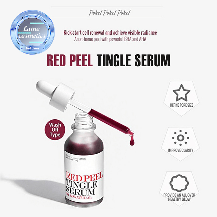 - Red Peel Tingle Serum - Peel Da Không Bong Tróc hỗ trợ làm liền sẹo nhỏ, cải thiện làn da sần sùi. Bên cạnh đó còn giúp loại bỏ những nếp nhăn li ti, giúp da căng mịn, khỏe mạnh
