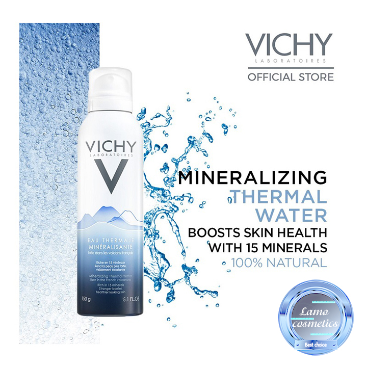 - Với TP là nguồn nước khoáng được hình thành hơn 9000 năm chảy qua các lớp nham thạch và núi lửa ở độ sâu hơn 4000m, Xịt khoáng Vichy Eau Thermale giúp giảm kích ứng, tăng sức đề khàng cho da